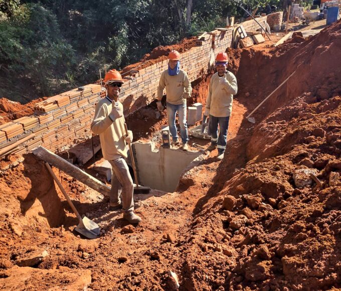 Equipes executam reparo emergencial em rede de água entre as ruas Colômbia e Argentina.