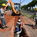 No feriado! Equipe a postos na rua São Paulo entre as ruas Rio Grande do Sul e Santa Catarina, nesta quarta-feira, dia 15, dando continuidade na construção de galerias de águas pluviais.