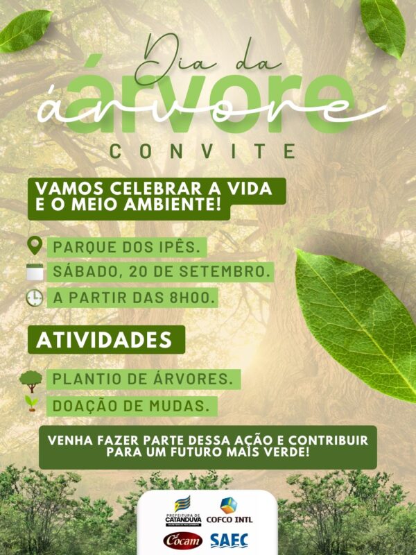 By Karla Sibro19 de setembro de 2025Convite especial! A Saec abraça essa iniciativa e estará junto neste evento para celebrar o Dia da Árvore. Mais do que uma data,...