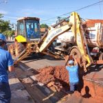 A SAEC acompanha a substituição da rede de esgoto da rua Guararapes, entre as ruas Nova Odessa e João Pessoa, na Vila Bela. O reparo emergencial é feito pela equipe da KGP, a partir da identificação de danos registrados no período pós temporal, após obra de extensão de rede de esgoto.