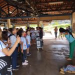 Os alunos da escola Lázara Antoninha da Silva Milhorança receberam a visita da turma da SAEC. Na escola Mário Juliano Pozetti, teve contação de história com foco na economia de água.