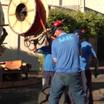 As equipes da Saec estão fazendo desobstrução na rede de esgoto na...