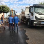 Sextou! É ponto facultativo nas repartições públicas, mas por aqui o trabalho é contínuo. Equipe da SAEC executa reparo na rua Novais, na Vila Soto,, para conter vazamento de água.