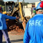 Equipe executa rebaixamento na rede água na rua Alegrete. A previsão é de que o serviço seja concluído até às 15 horas. As melhorias visam mais infraestrutura no local. Em breve, a Prefeitura de Catanduva fará a pavimentação no bairro.