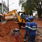 De prontidão! A SAEC executa, neste momento, substituição emergencial de ramal de água na rua Maranhão, entre as ruas Minas Gerais e Cuiabá.