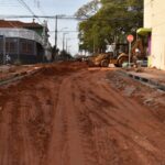 Na ocasião, equipe da SAEC está de prontidão na rua São Paulo e executa reparo para conter vazamento de água.