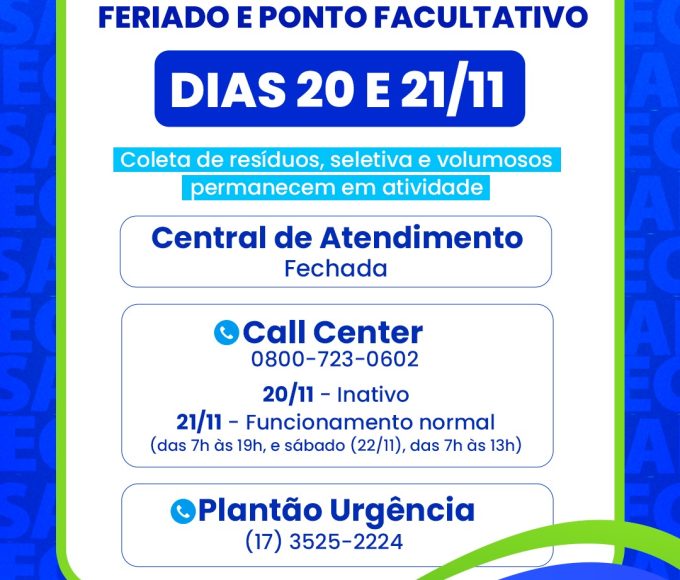 Equipes da Saec estão concentradas na rua São Paulo esquina com a Ibirá para sanar problema de vazamento de água. Por conta dos trabalhos de melhorias na rede de abastecimento de água, será necessário fechar a Unidade de Reservação 7 de Setembro, nesta sexta-feira, dia 3, a partir das 12h30.