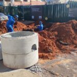 A interdição para construção de poço de visita (pv) e ramal de esgoto foi concluída dentro do prazo esperado.