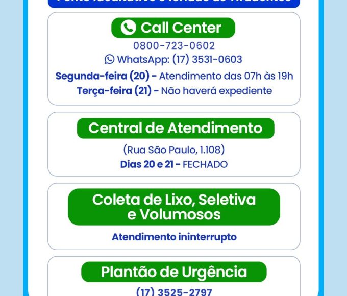 Se o caminhão não passar na sua rua no dia e horário determinados. Ligue e informe: 0800 723 0602