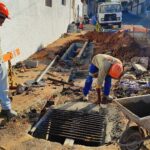 Equipe precisou fechar o reservatório para fazer a manutenção de rede quebrada na rua Sorocaba esquina com a rua Porto Alegre.