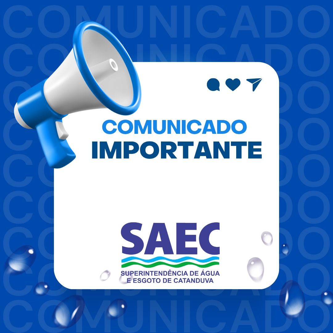 Atenção, contribuinte! Nesta sexta-feira, dia 31, a partir das 16h, o sistema de telefonia da SAEC passará por manutenção. Durante esse período, os números (17) 3531-0600 e 0800-723-0602 ficarão temporariamente fora do ar.