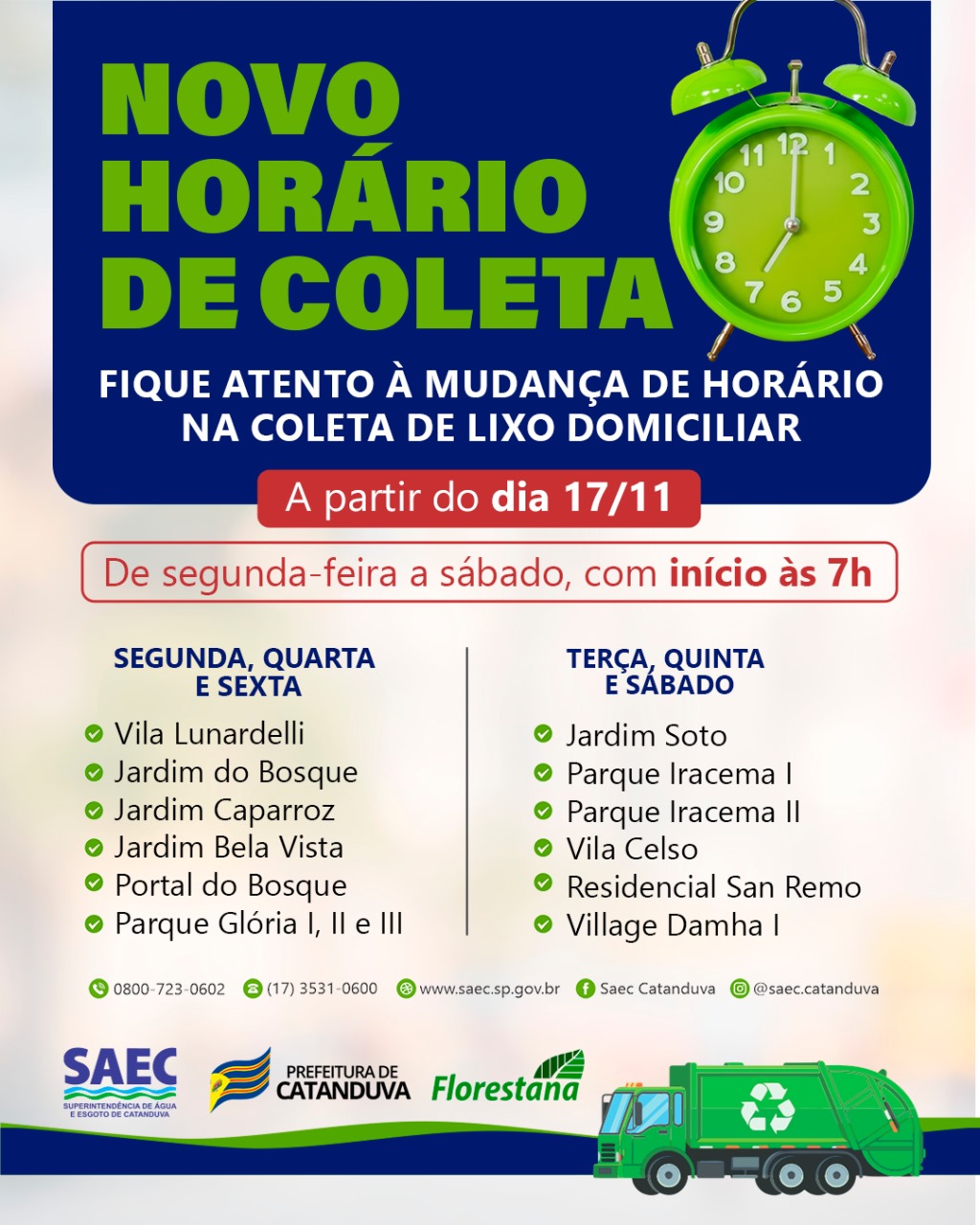 Bairros com novo horário: Vila Lunardelli, Jardim do Bosque, Jardim Caparroz, Bela Vista, Portal do Bosque, Parque Glória I, II e III, Jardim Soto, Parque Iracema I e II, Vila Celso, Residencial San Remo e Village Damha I.