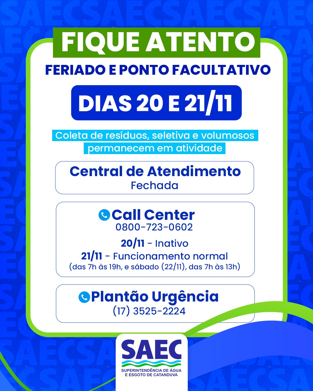 Aproveite para descansar, mas já fique por dentro do funcionamento da Saec nos próximos dias.