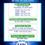 Central da Saec – terça (30), das 8h às 16h30