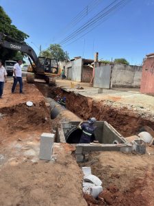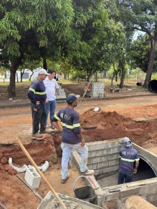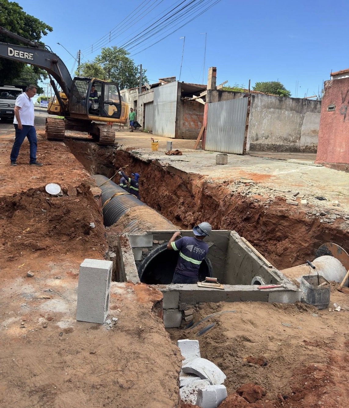 As obras de drenagem avançam na rua Cristais entre as ruas Formosa e Ipiranga. Equipes realizam a implantação de tubulações, poços de visita e bocas de lobo — etapas essenciais para acabar com os alagamentos históricos da região.