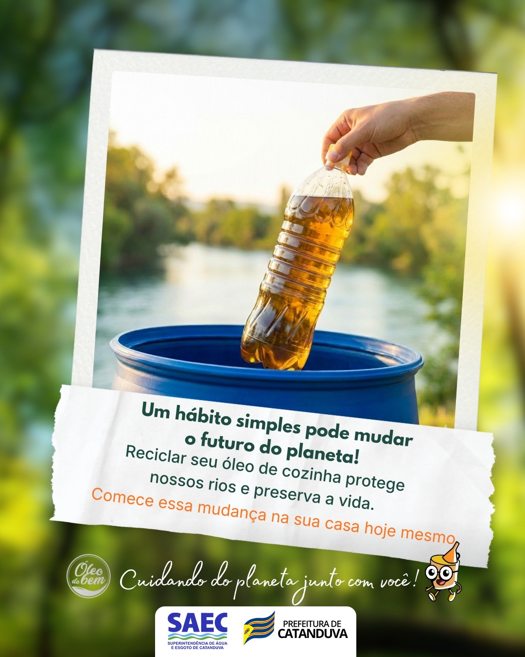 Catanduva fazendo a diferença. Em 2025, o projeto Óleo do Bem arrecadou 1.368 litros de óleo usado — um gesto simples que gerou um impacto gigante para o meio ambiente e para a nossa cidade!