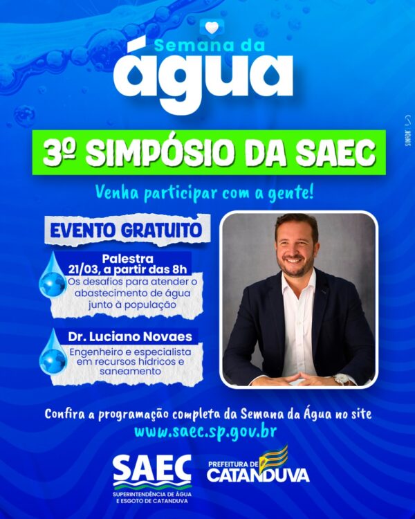 By Karla Sibro13 de março de 2025Água é vida! Venha discutir e refletir sobre atitudes sustentáveis para preservar esse bem tão precioso. 21 de março 8h Teatro Municipal Aniz...