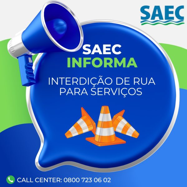 By Karla Sibro16 de agosto de 2023A SAEC informa que a rua Aracajú entre a avenida José Nelson Machado e rua Rio Branco será interditada nesta quarta-feira, dia 16,...