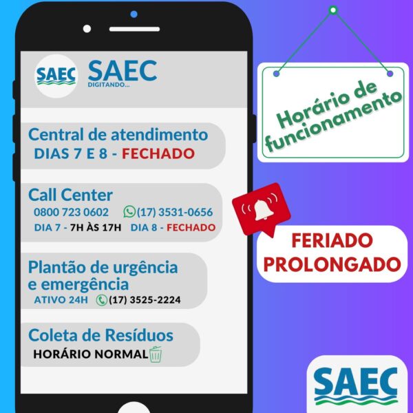 By Karla Sibro3 de agosto de 2023Programe-se! Confira como ficam os canais de comunicação da SAEC neste feriado prolongado em comemoração ao Padroeiro de Catanduva, São Domingos. Vale lembrar...